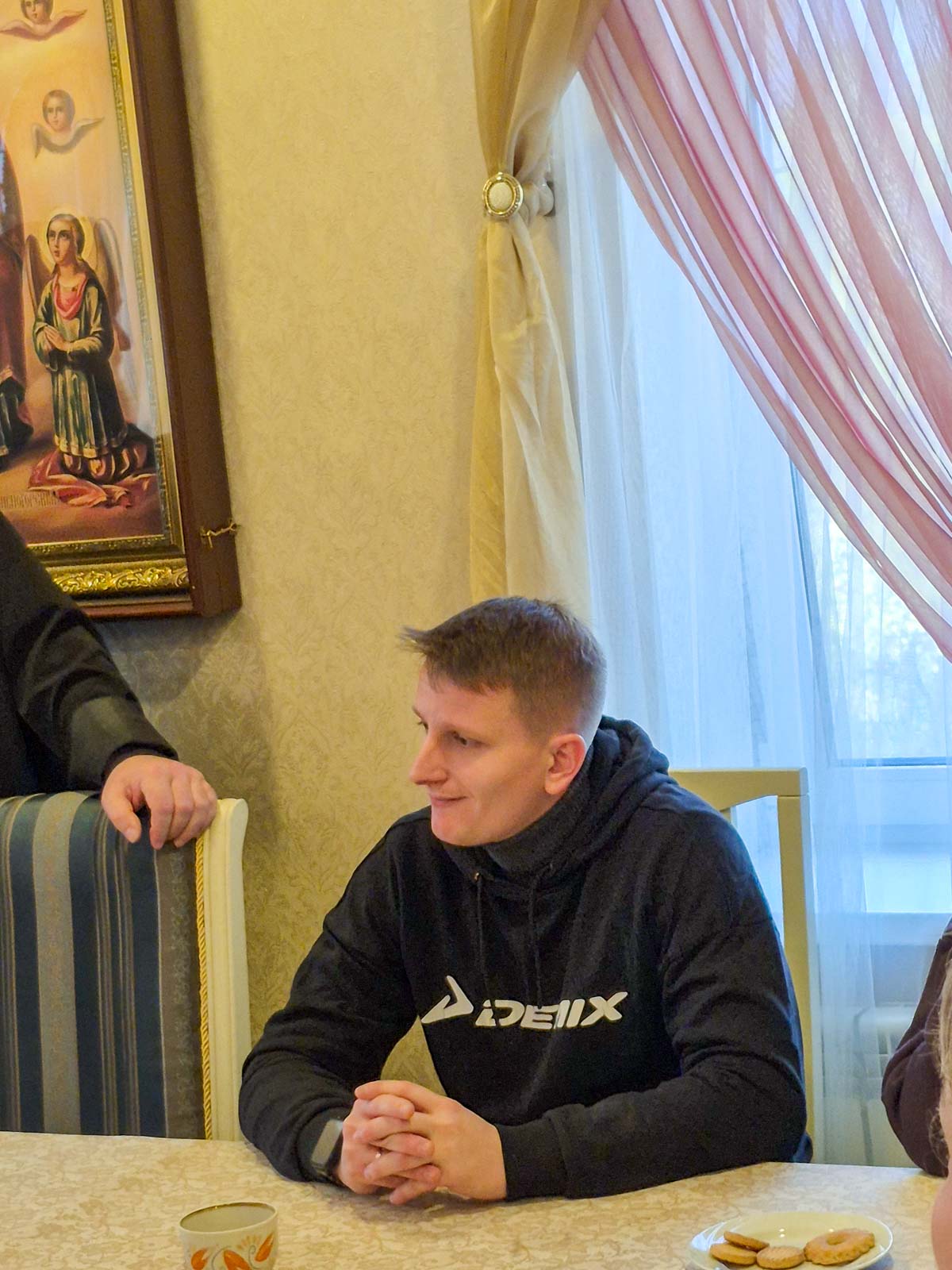 После трудовой части встреча продолжилась в тёплой атмосфере за чашкой чая. В диалоге с молодёжью участвовал первый секретарь Гомельского областного комитета ОО «БРСМ» Игорь Викторович Назарчук. Разговор с отцом Василием перешёл в живое обсуждение духовных и жизненных тем.