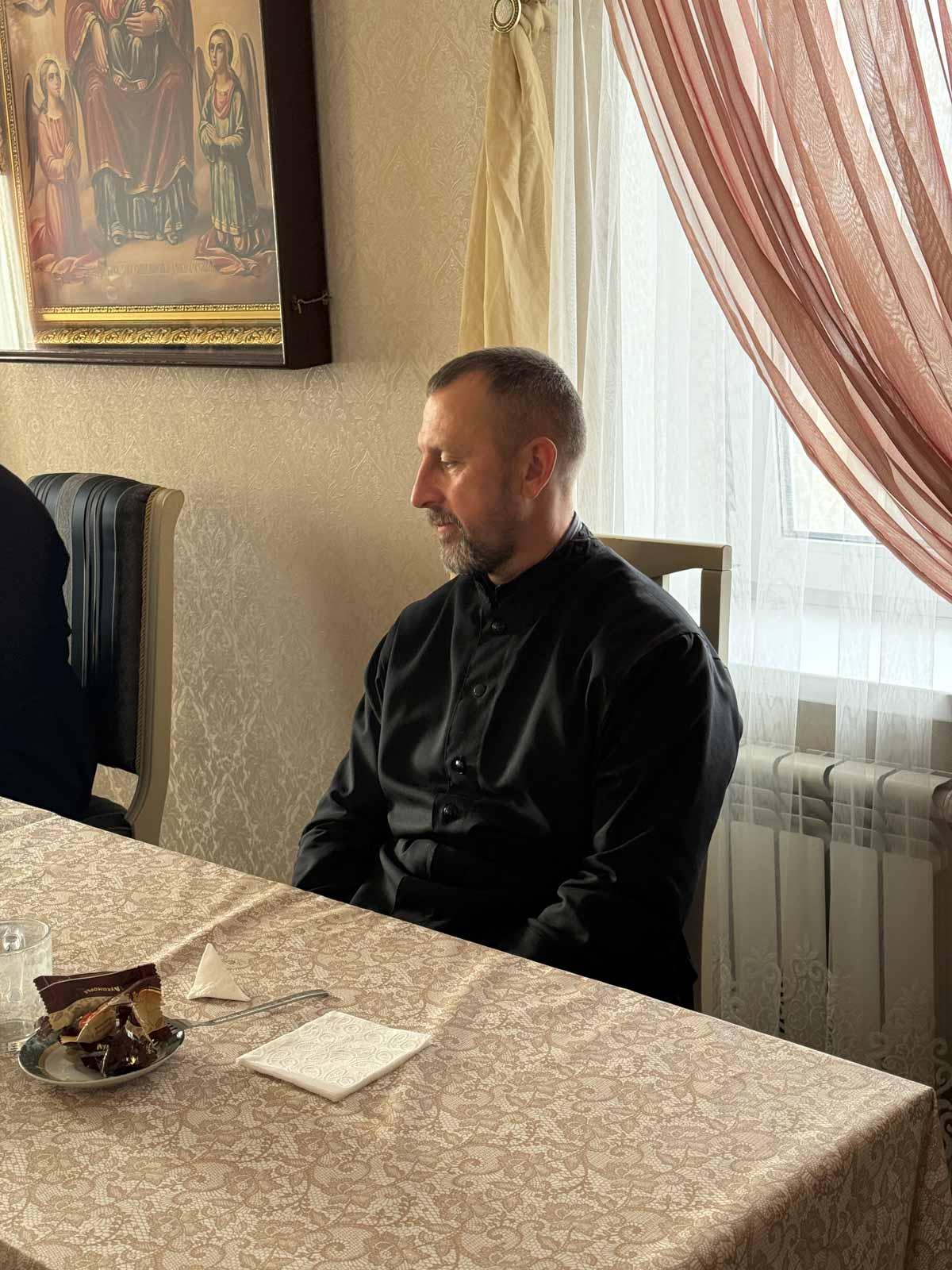 После богослужения состоялась традиционная встреча с прихожанами, которую провёл иерей Василий Коломиец. Темой беседы стала непростая, но важная для каждого христианина тема: