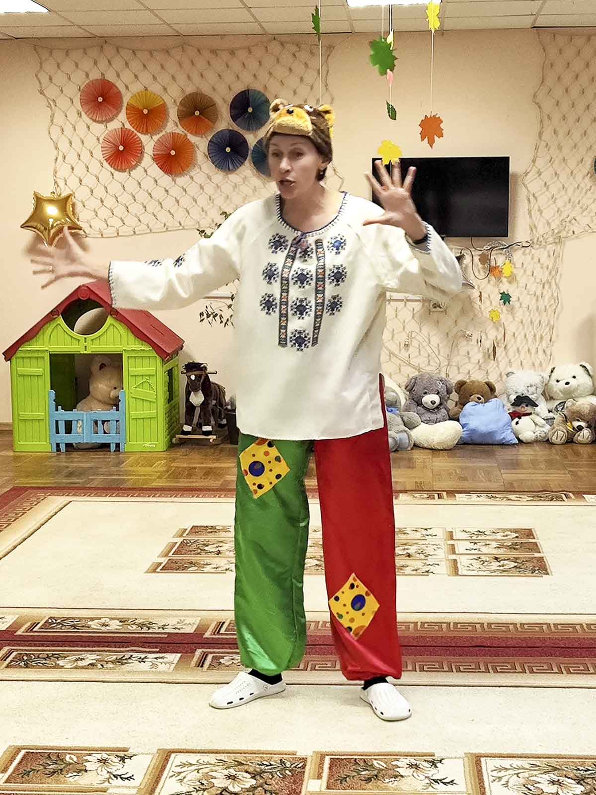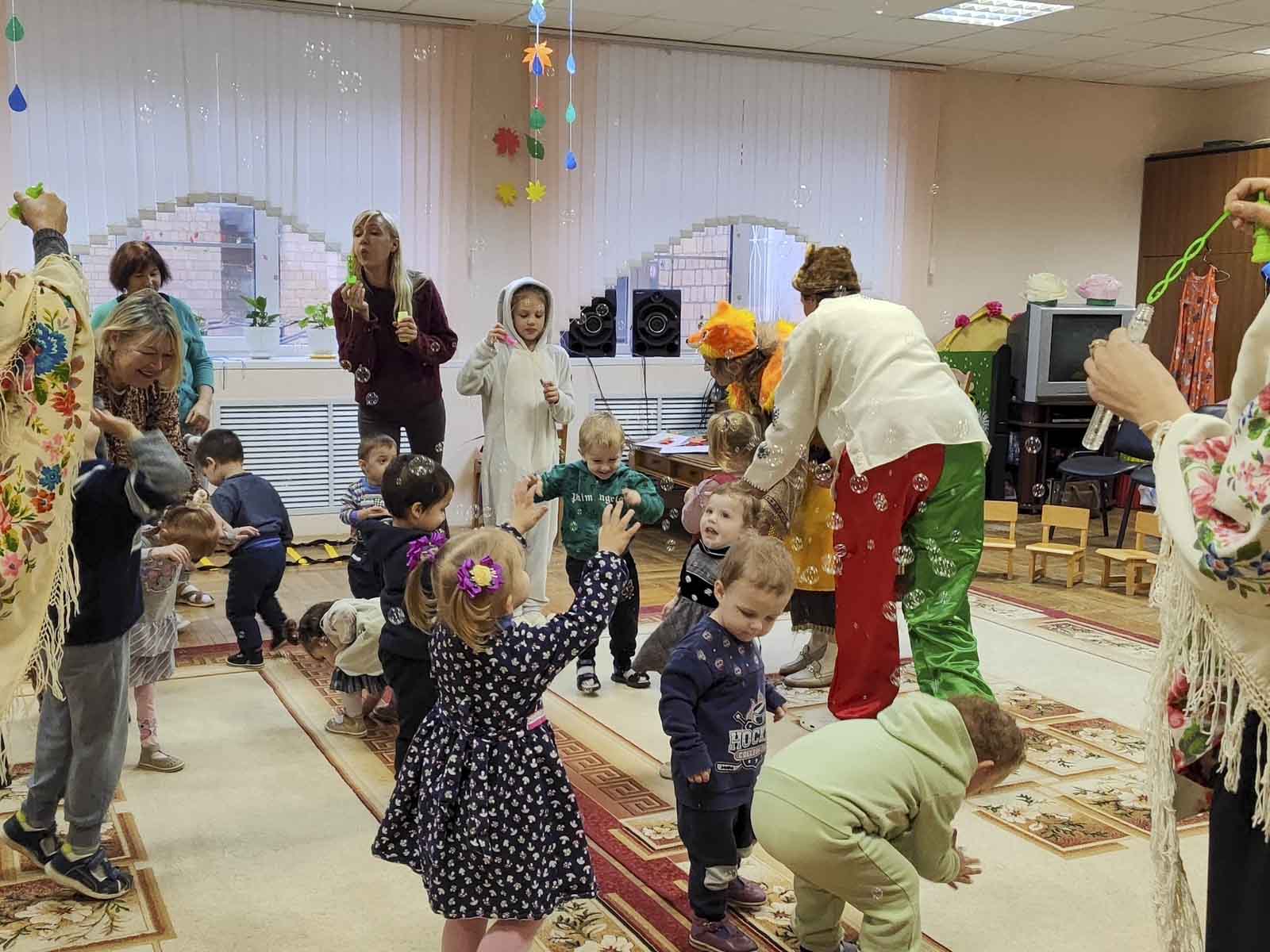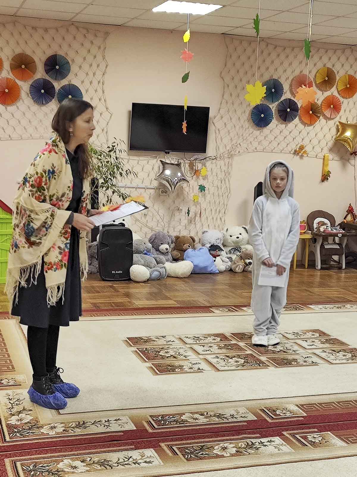 На этот раз ребята подготовили игровую программу «Осень в лесу» — яркое, весёлое и доброе представление, полное живого общения и улыбок. Вместе с героями сказочного леса малыши отправились в путешествие: помогали медведю найти дорогу к берлоге, зайчику — согреться, лисичке — отыскать тёплые носочки, а белочке — собрать орешки и запастись на зиму.