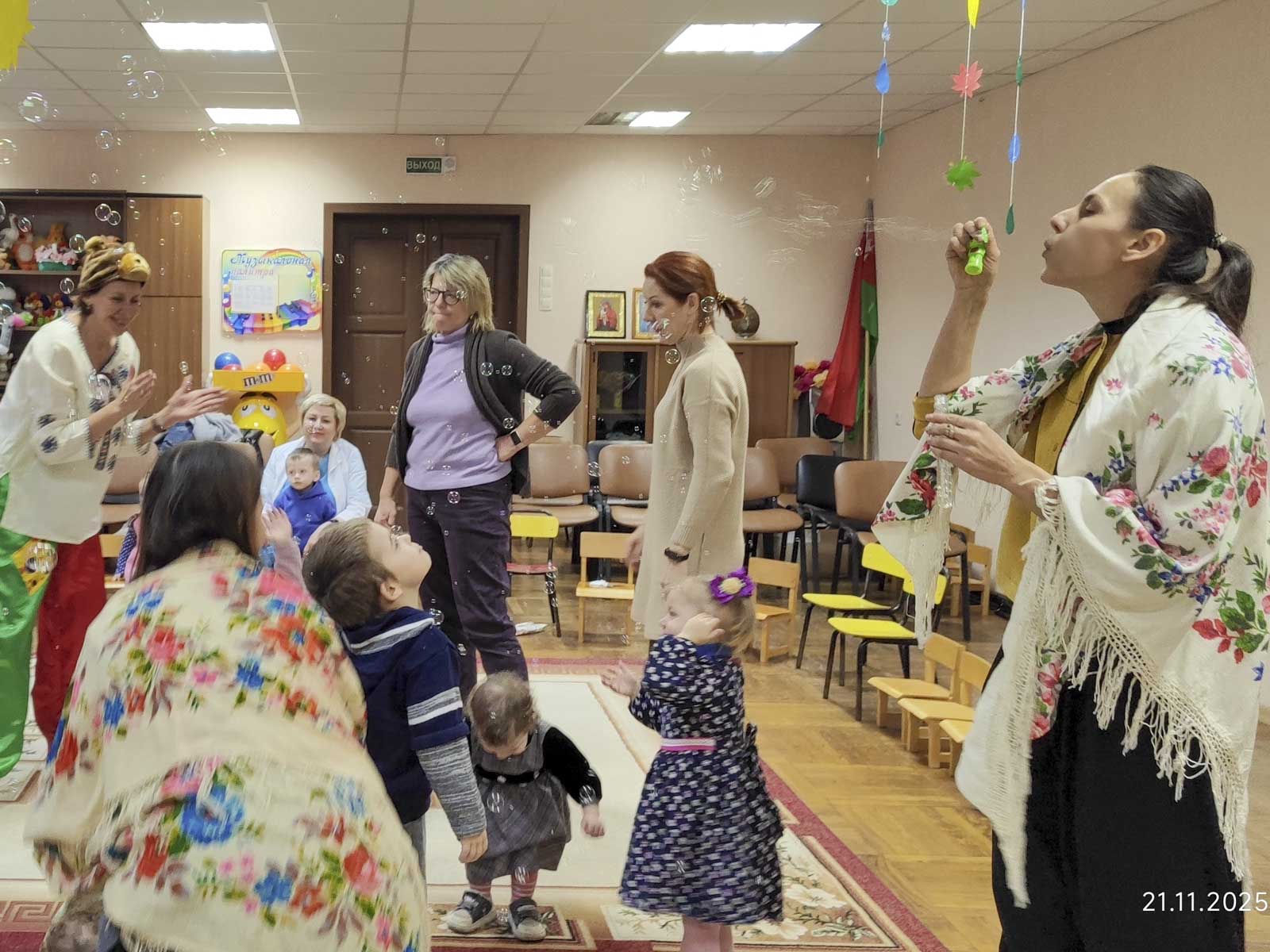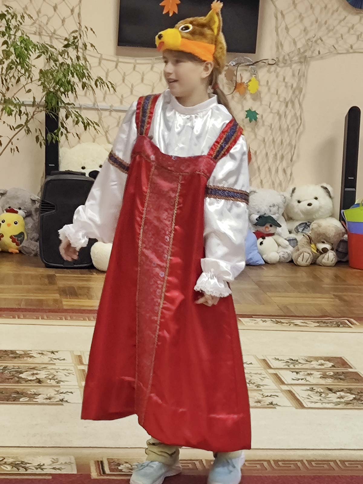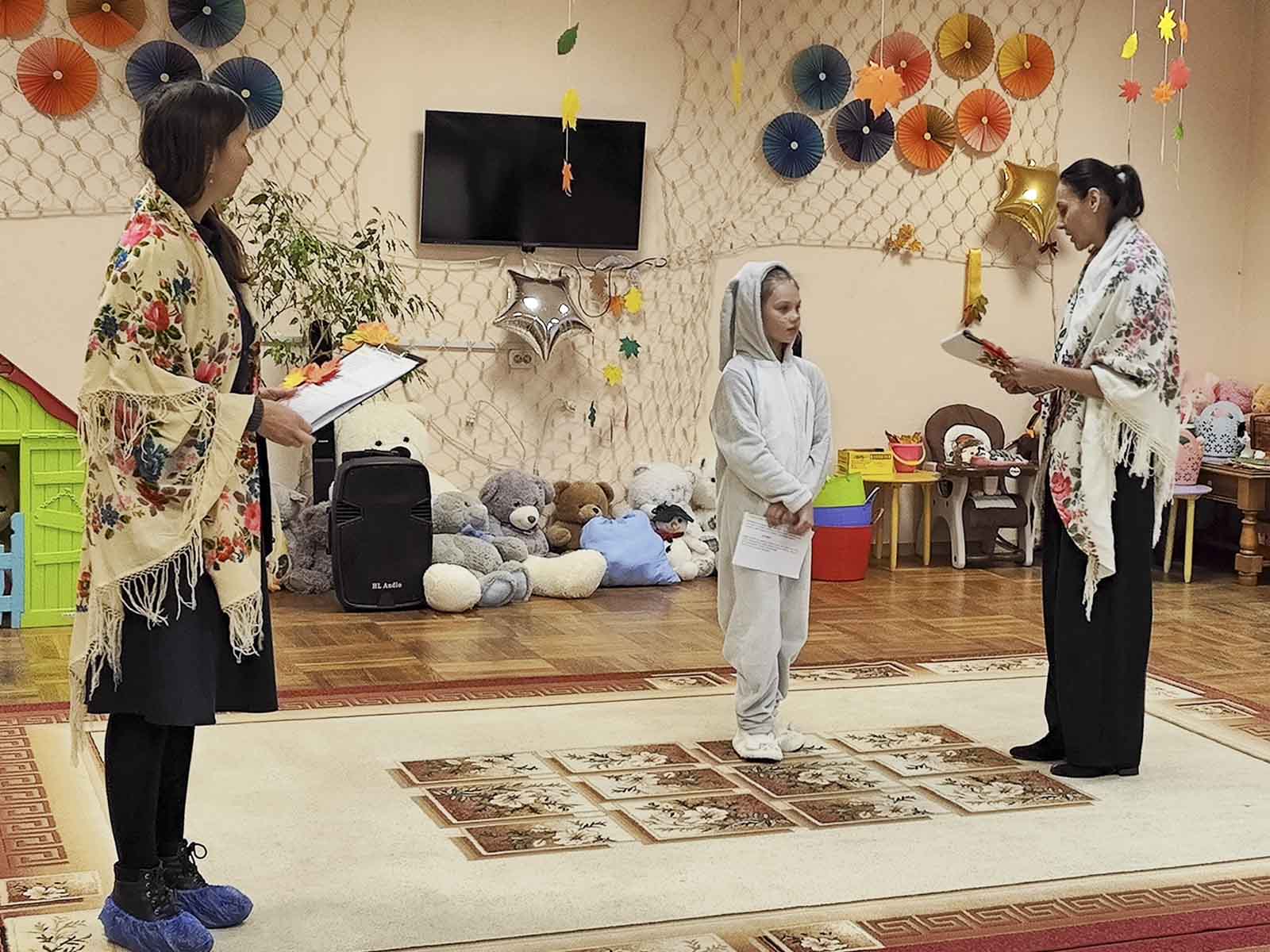 На этот раз ребята подготовили игровую программу «Осень в лесу» — яркое, весёлое и доброе представление, полное живого общения и улыбок. Вместе с героями сказочного леса малыши отправились в путешествие: помогали медведю найти дорогу к берлоге, зайчику — согреться, лисичке — отыскать тёплые носочки, а белочке — собрать орешки и запастись на зиму.