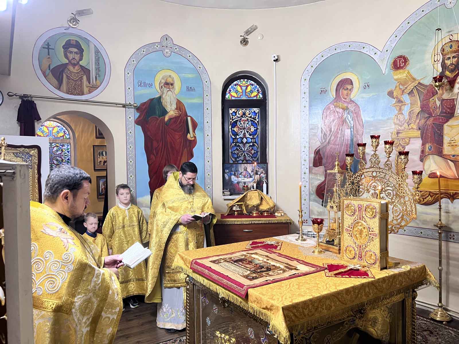 Воскресный день в приходе храма Преображения Господня проходит по-семейному и душевно. 23 ноября Божественную литургию возглавил настоятель прихода протоиерей Олег Кострома в сослужении духовенства храма.