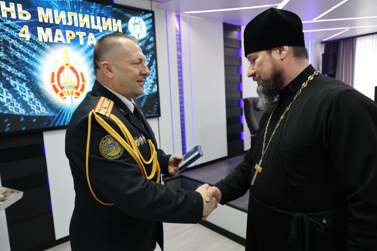 Отдельно было подчеркнуто многолетнее сотрудничество Гомельской епархии с Департаментом охраны. За взаимодействие и участие в духовно-нравственной работе с личным составом иерей Василий Коломиец был удостоен нагрудного знака.