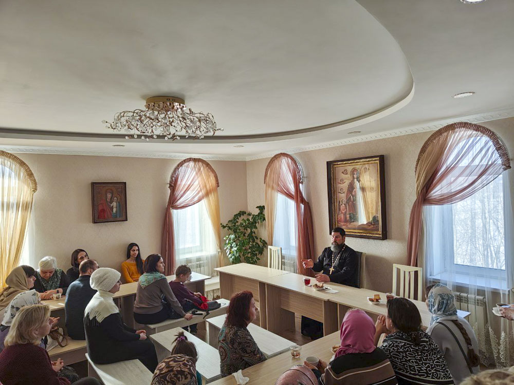Продолжением молитвенного общения стала встреча прихожан с иереем Василием Коломийцем. Темой обсуждения стало отношение христианина к часто повторяющимся малым грехам.