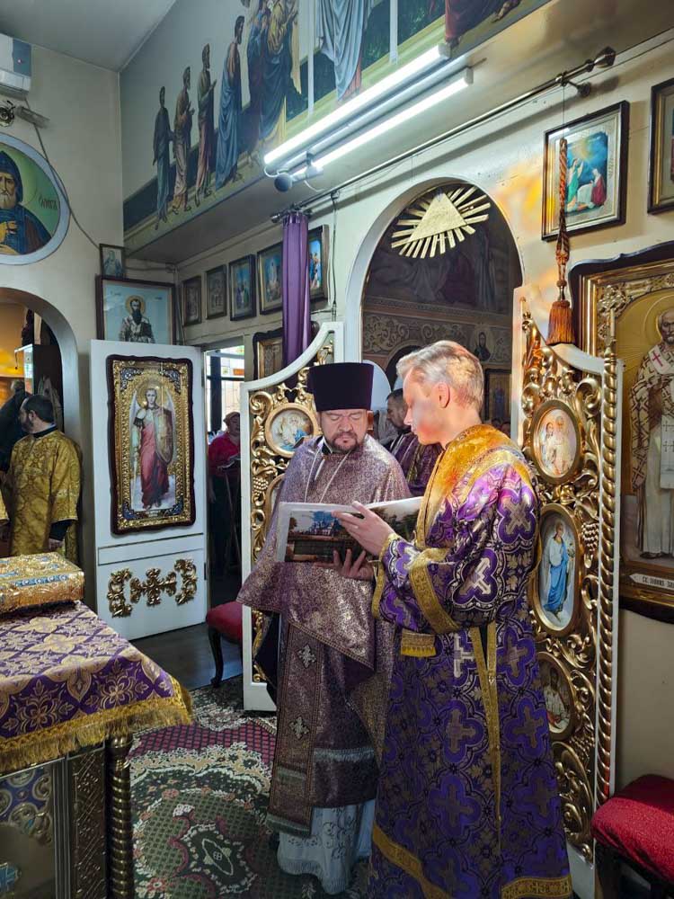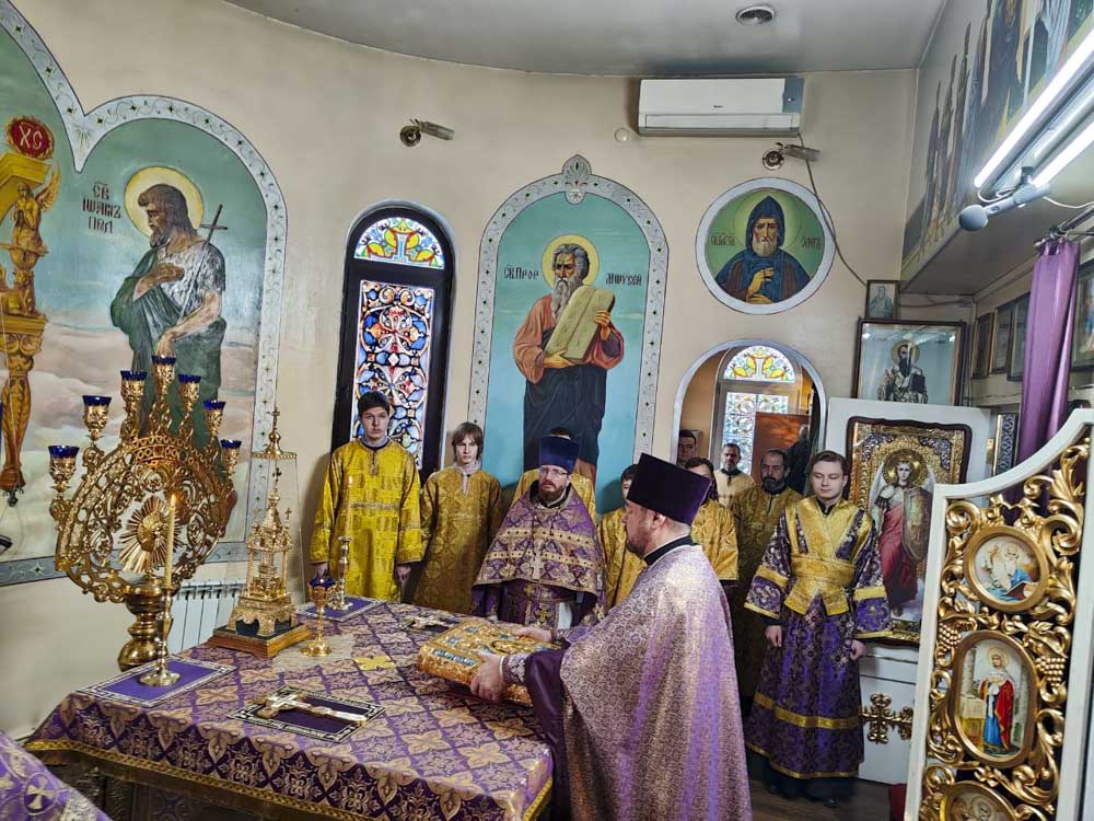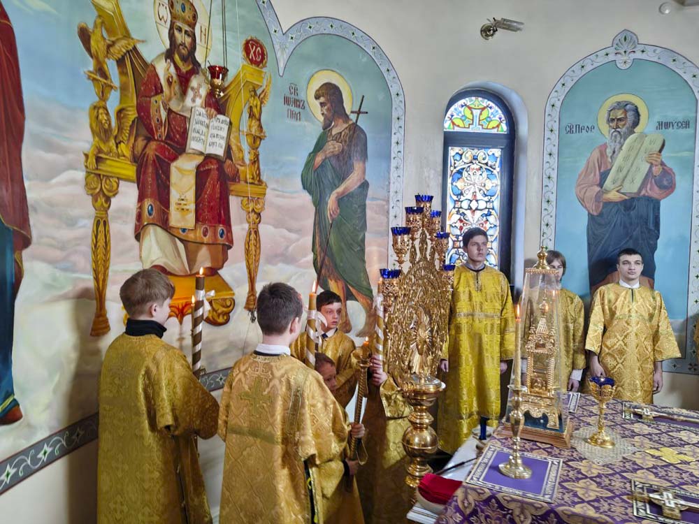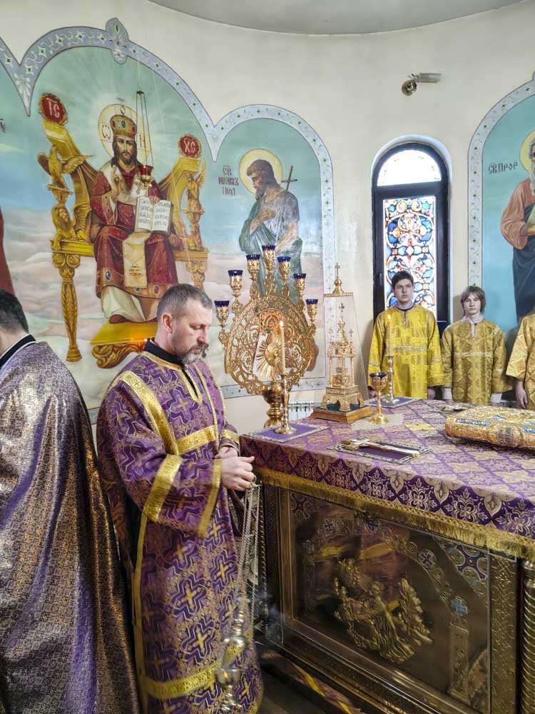 В день обретения мощей блаженной Матроны Московской Божественную литургию возглавил настоятель храма протоиерей Олег Кострома, в сослужении духовенства прихода.