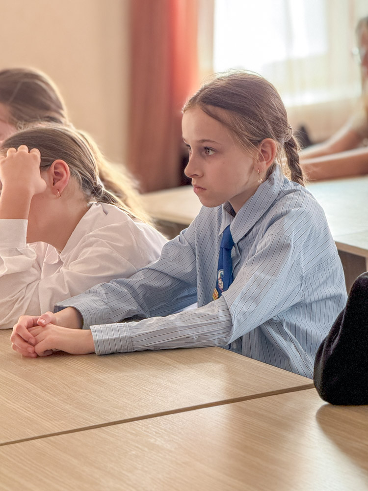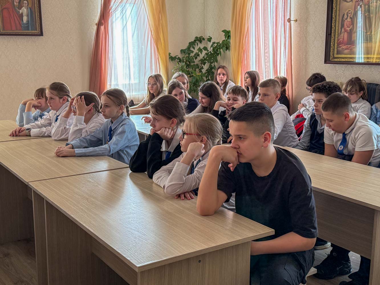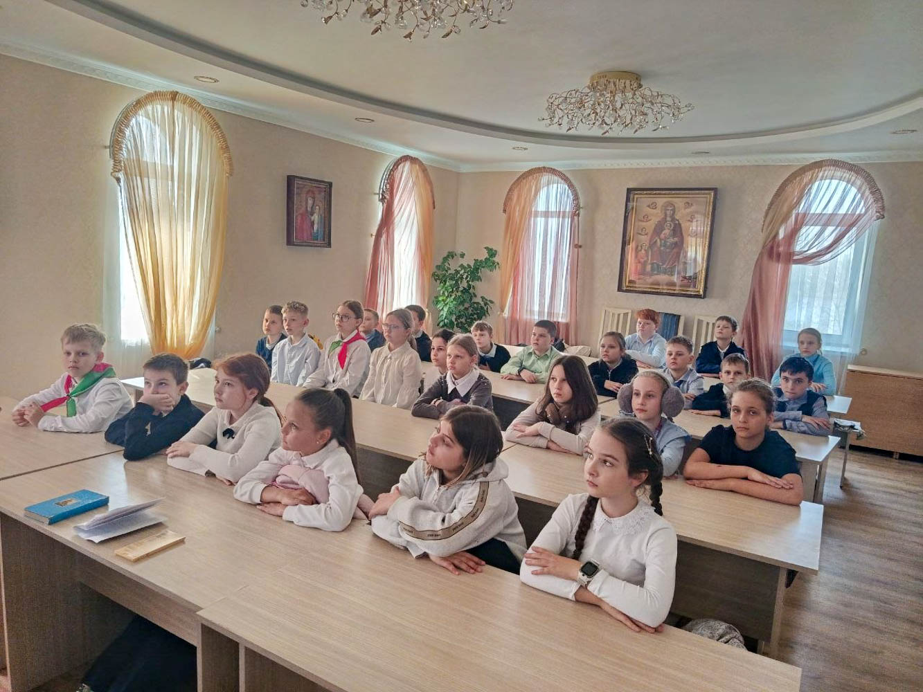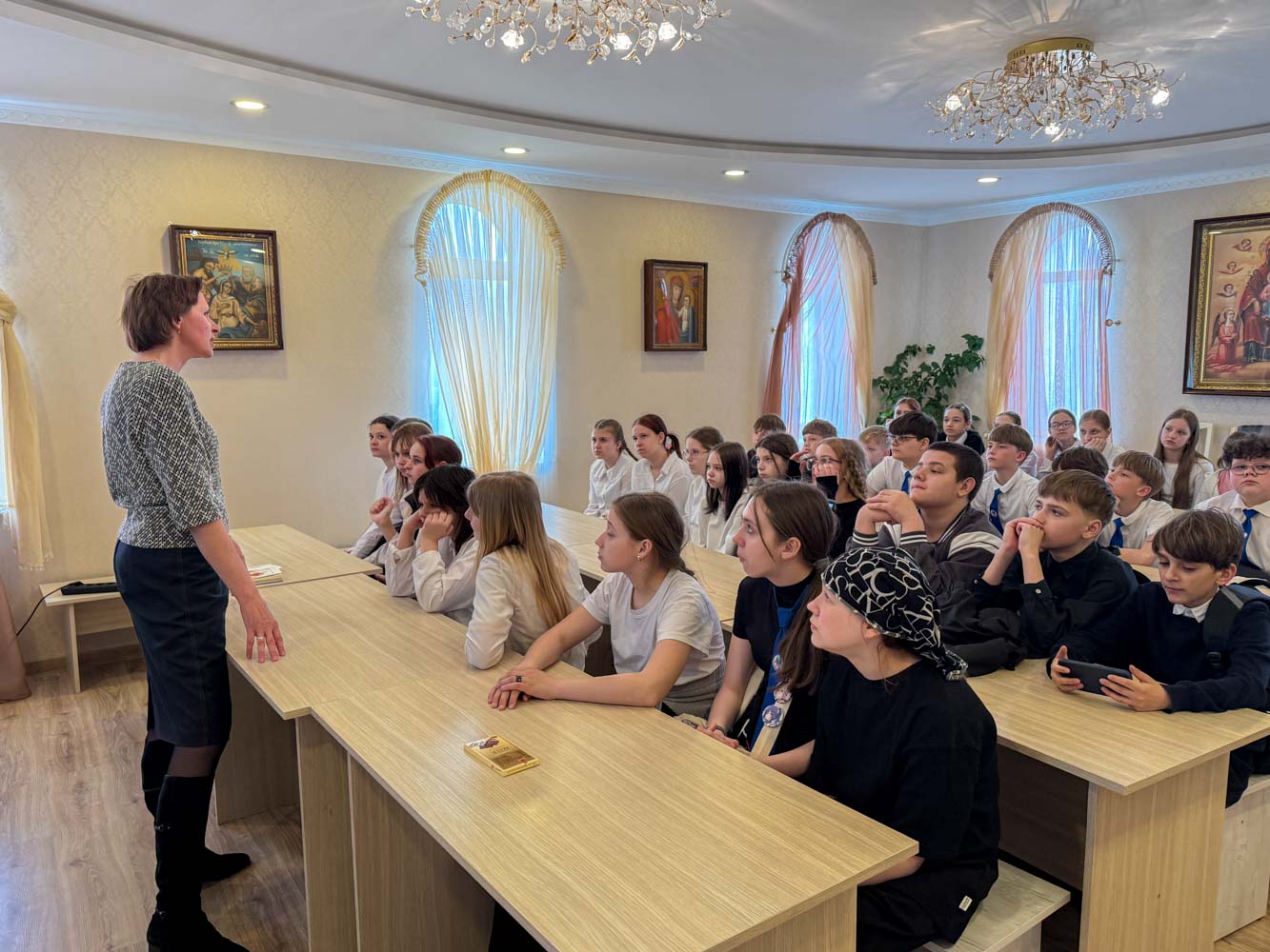 В ходе встречи со школьниками говорили о том, что составляет внутреннюю основу жизни человека и какие ориентиры помогают сохранять целостность личности. Речь шла о внутренней дисциплине, уважении к родителям, учителям и старшим, ответственном отношении к учёбе, внимании к своим словам и поступкам. Отдельно был приведён пример святых, чья жизнь свидетельствует о верности добру, совести и своему долгу.