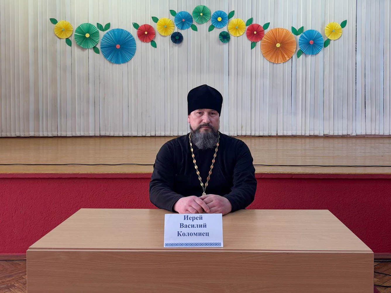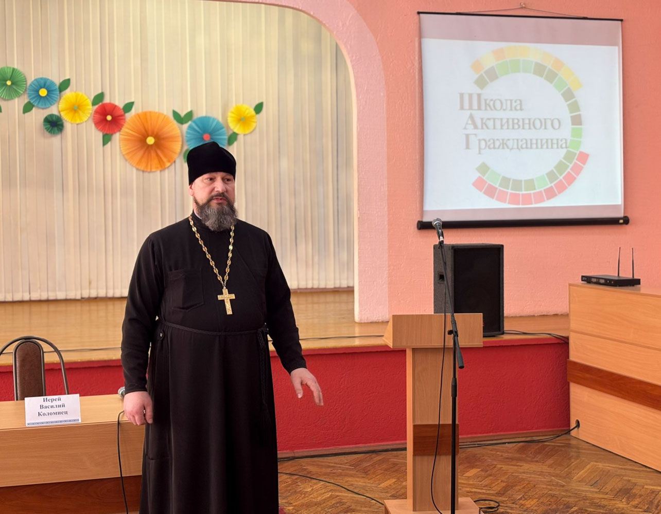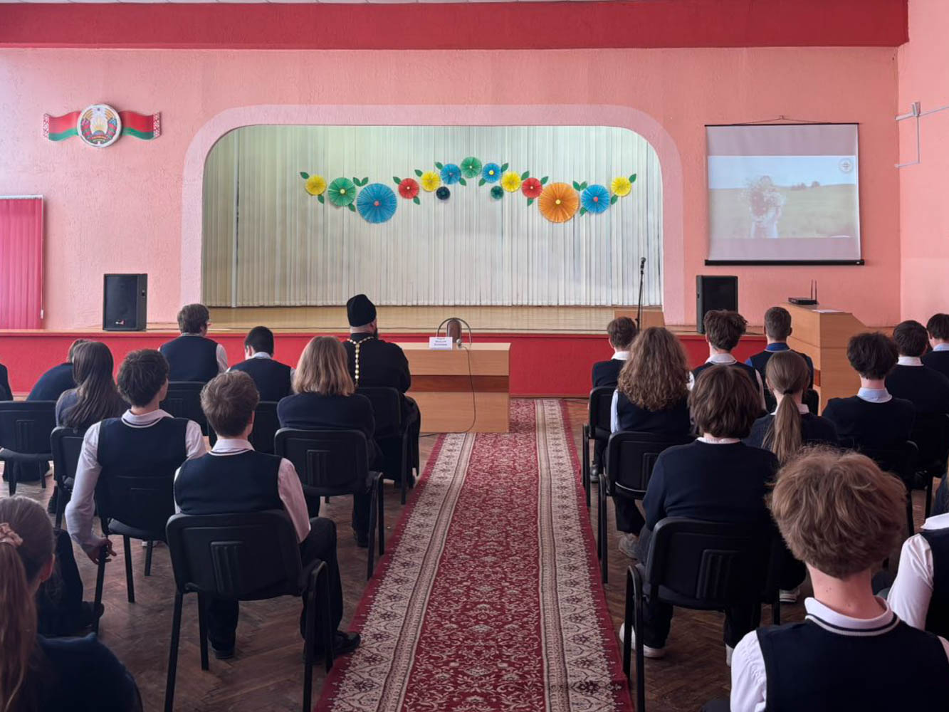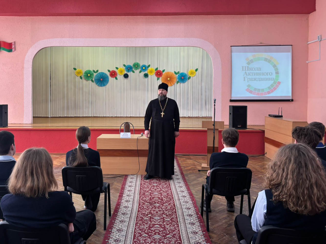 31 марта клирик храма Преображения Господня иерей Василий Коломиец провёл урок Школы Активного Гражданина в ГУО «Средняя школа № 27 г. Гомеля» для учащихся 8–11 классов. Беседа была посвящена тем духовным ценностям, которые помогают человеку сохранять внутреннюю опору, уважение к окружающим и любовь к Отечеству.