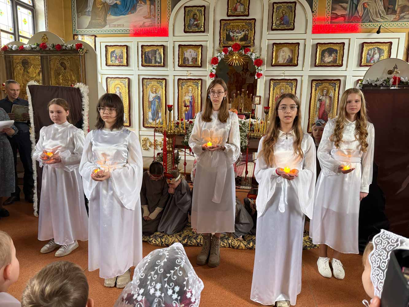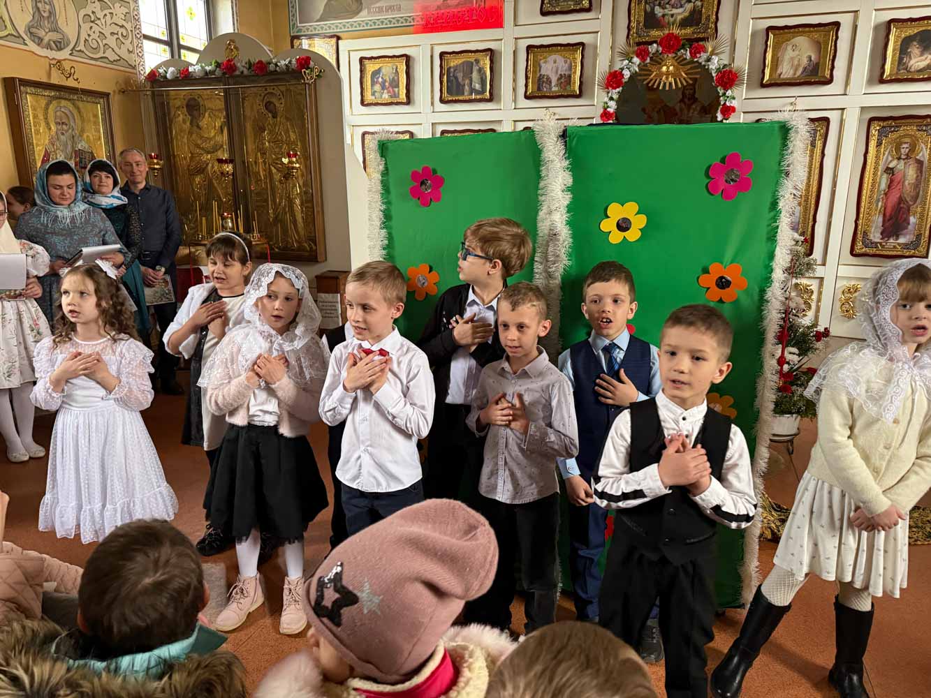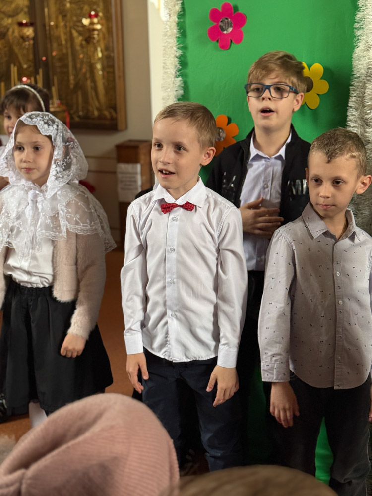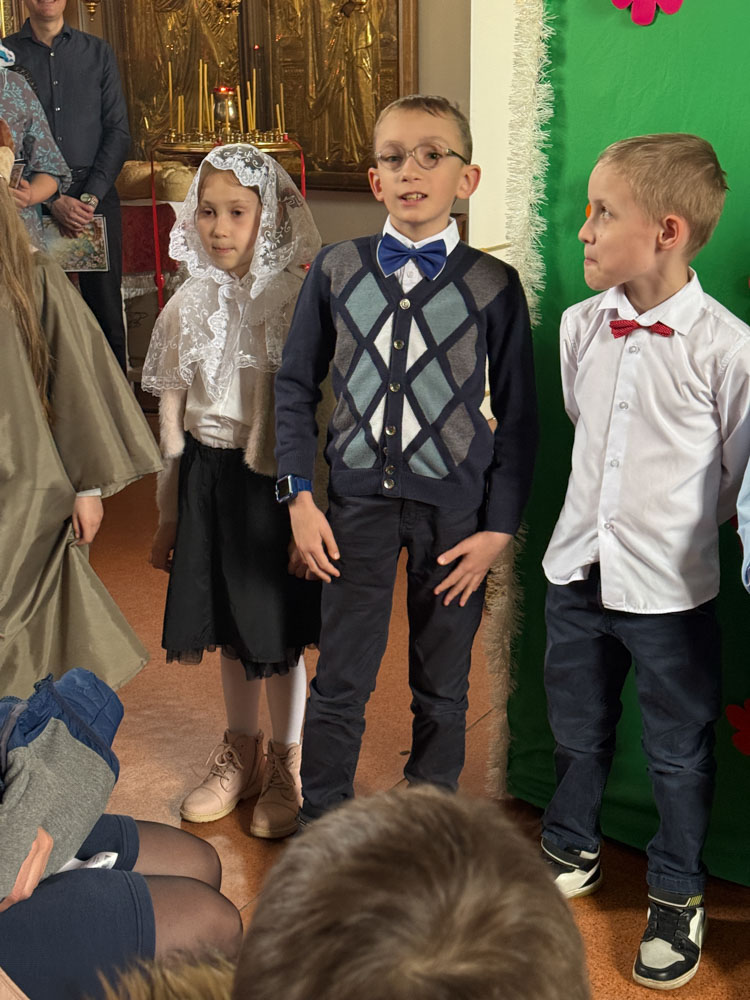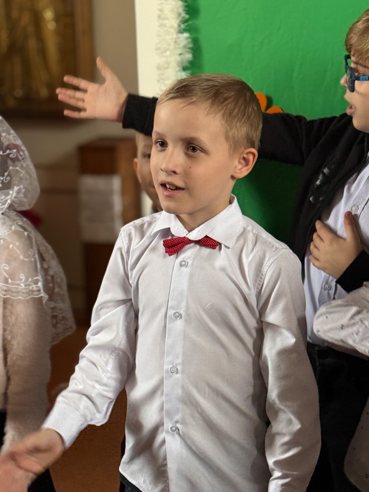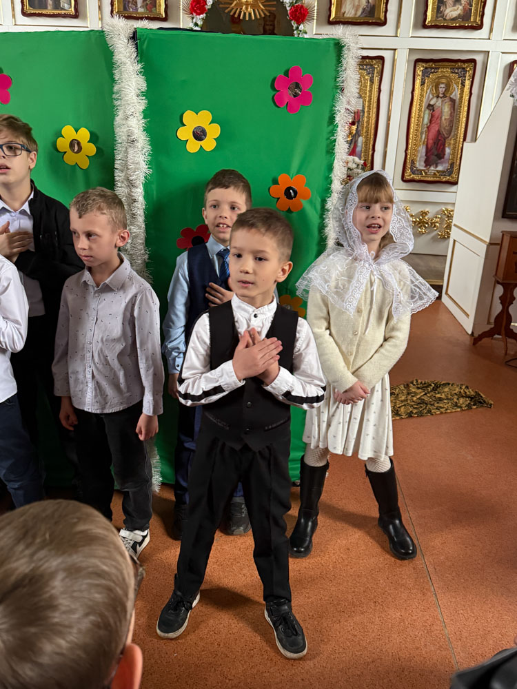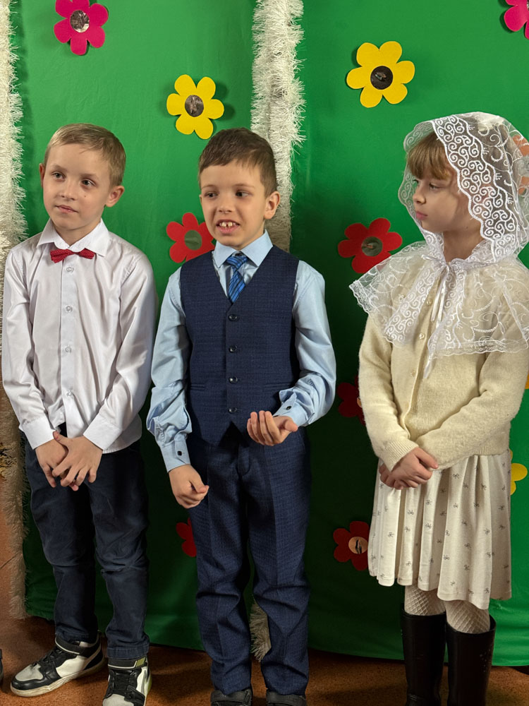 Дети поздравили приход с Пасхой стихами, песнопениями и добрыми словами о Воскресшем Христе. Юные артисты подготовили сказку о красношейке – маленькой птице, получившей свои красные пёрышки за помощь и сострадание.