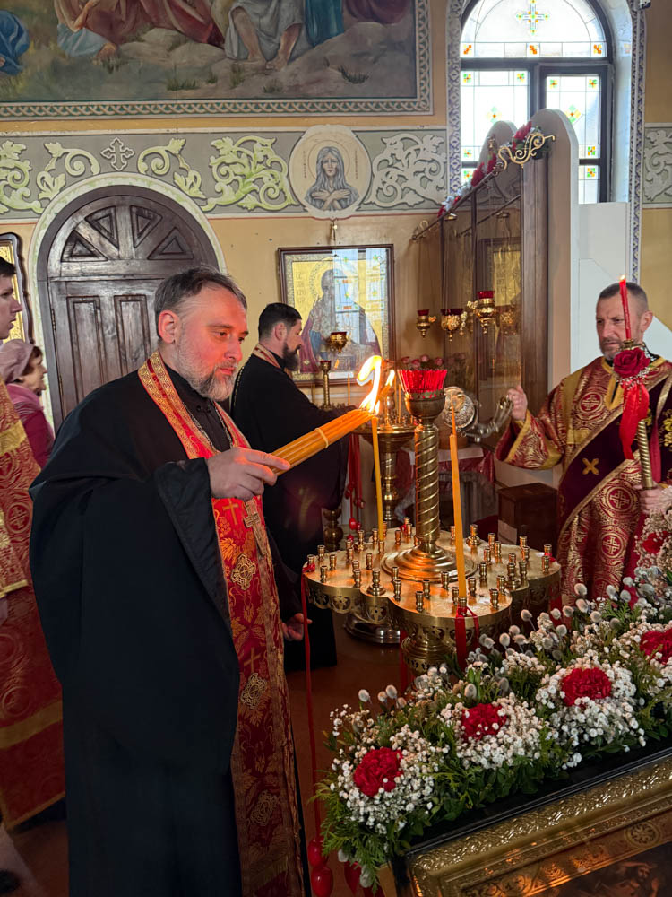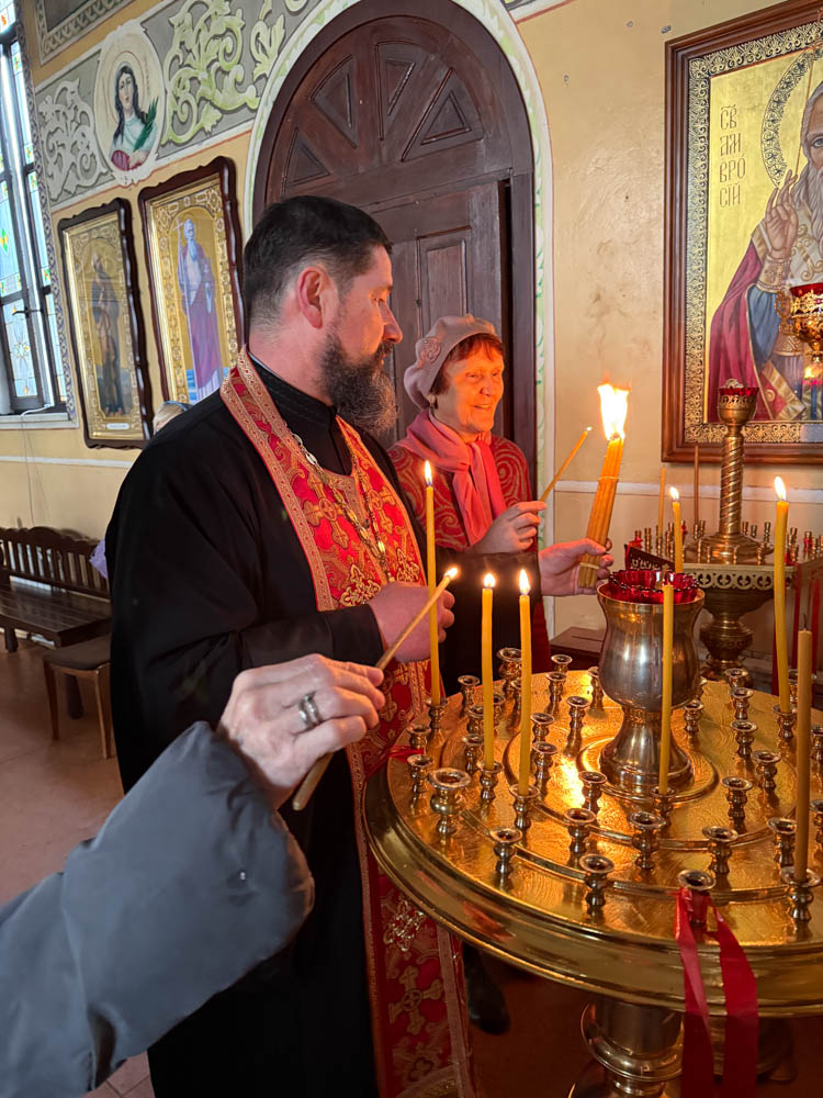 Передвижная звонница сделала 25 остановок у городских храмов и завершила маршрут у храма Преображения Господня. Здесь святыню торжественно встретили священнослужители и прихожане и зажгли от неё свои лампады.
