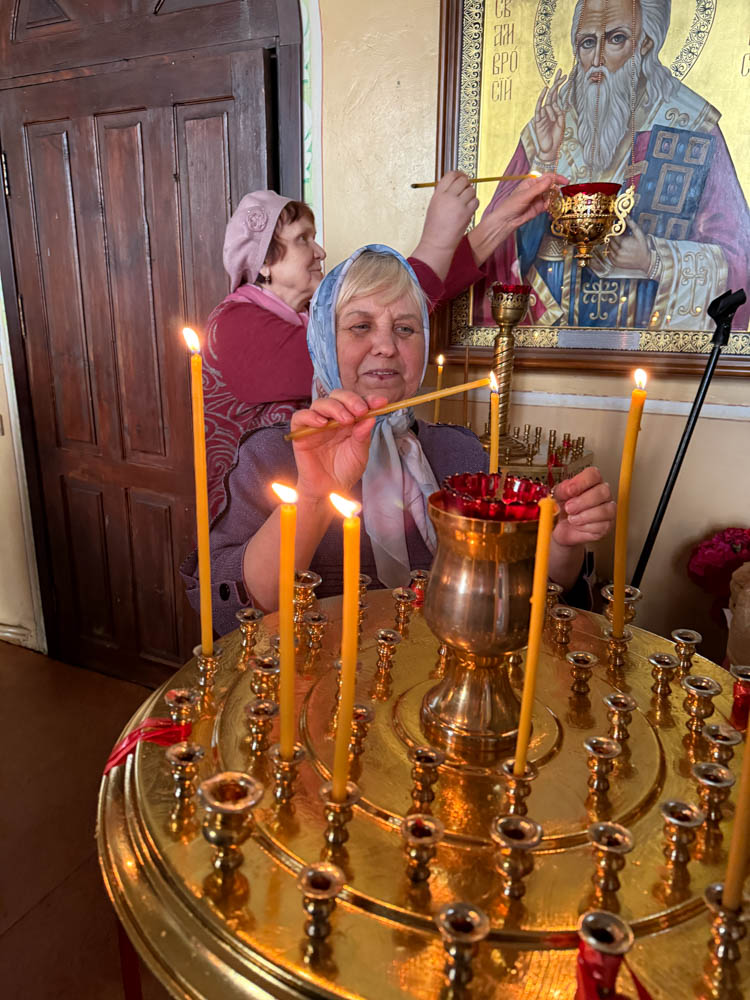Благодатный огонь продолжает гореть в храме. Все желающие могут взять его и принести в свой дом.