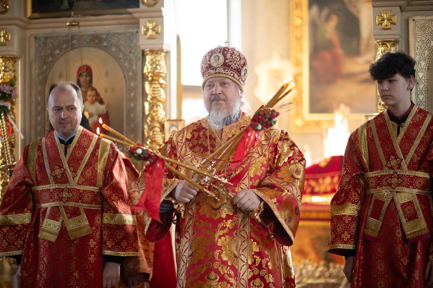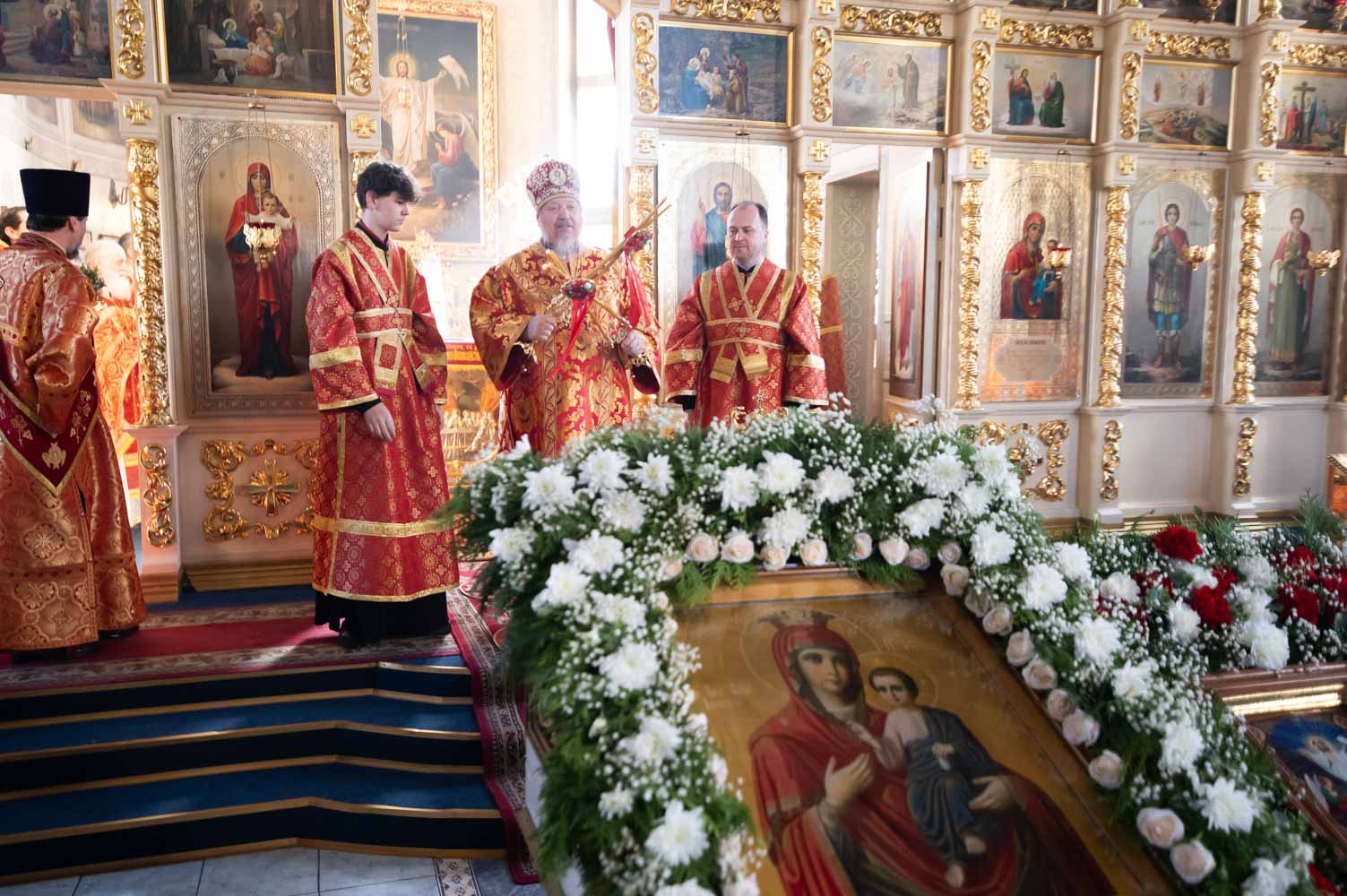 Во вторник Светлой седмицы, день празднования Иверской иконы Божией Матери 14 апреля 2026 года настоятель нашего храма протоиерей Олег Кострома сослужил за Божественной литургией Высокопреосвященнейшему Стефану, архиепископу Гомельскому и Жлобинскому в одноименном храме г.Гомеля.