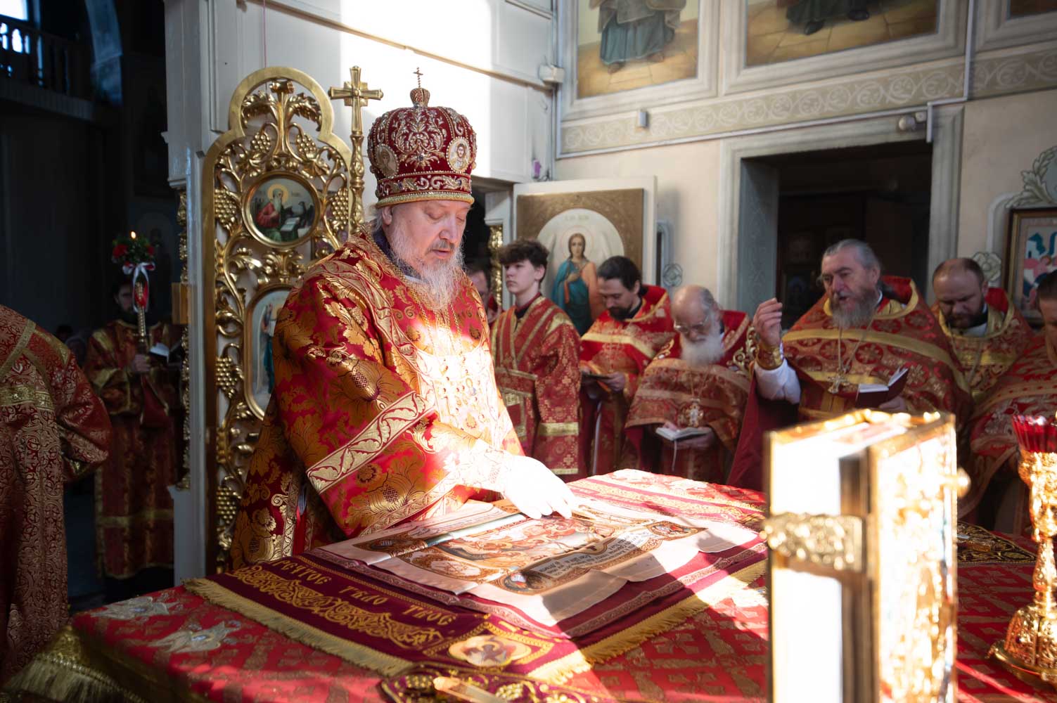Во время богослужения были вознесены сугубые молитвенные прошения о восстановлении мира.