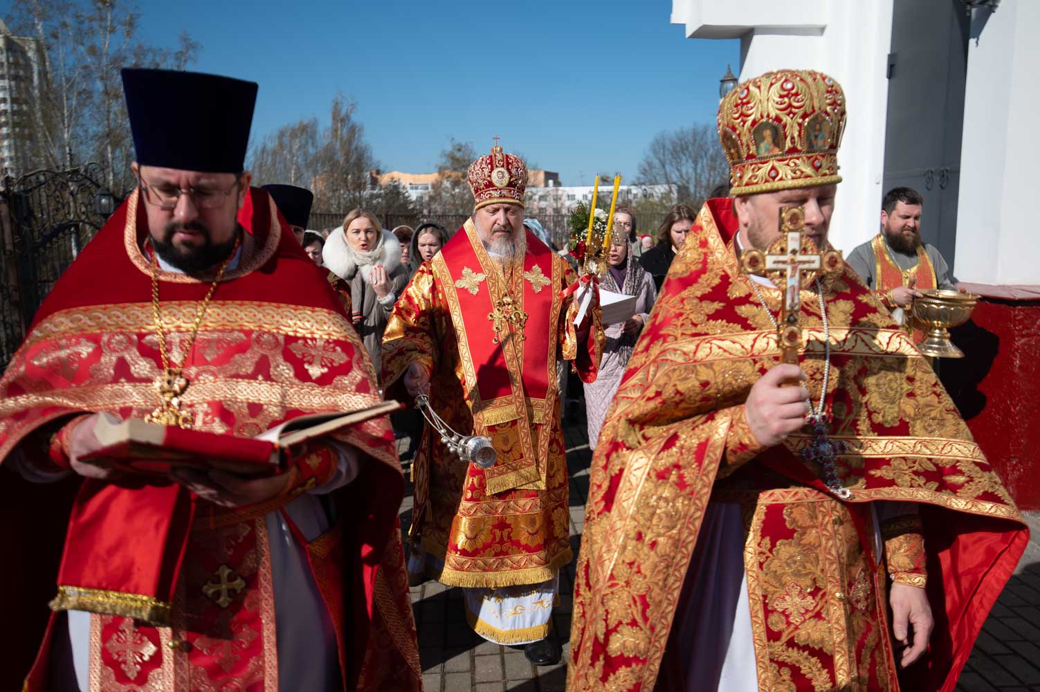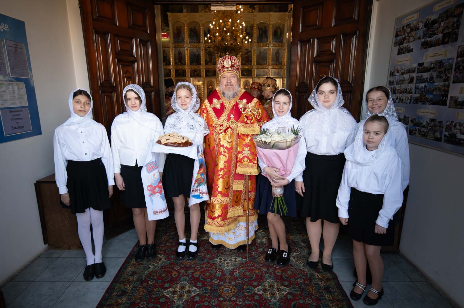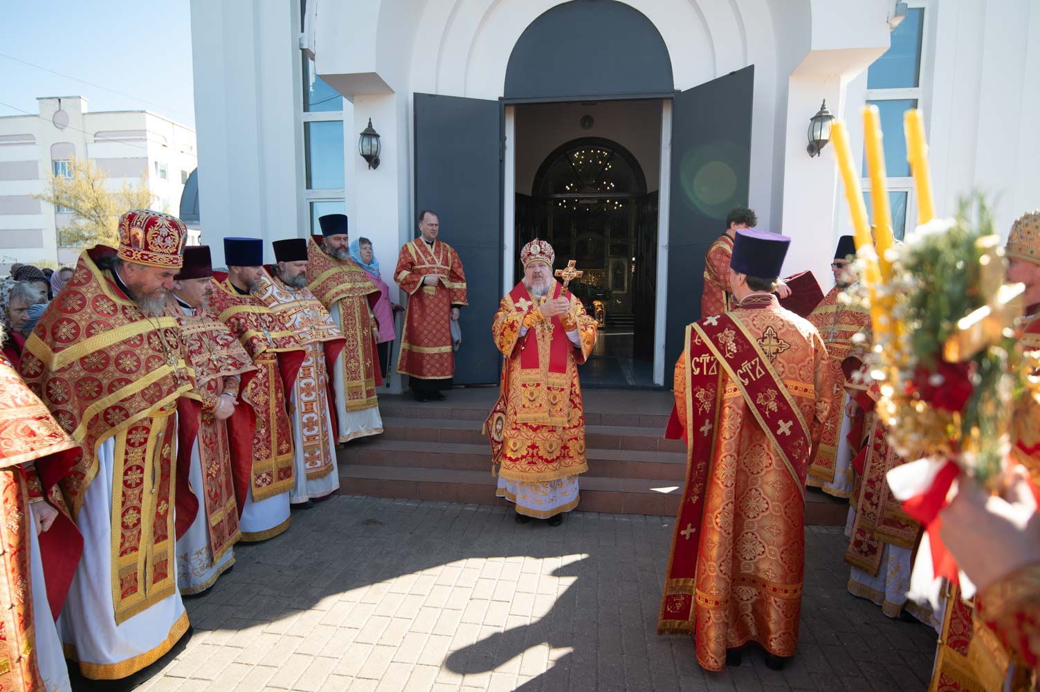После богослужения Владыка возглавил Крестный ход, а затем поздравил причастников с принятием Святых Христовых Таин и обратился к молящимся со словами Архипастырского назидания.