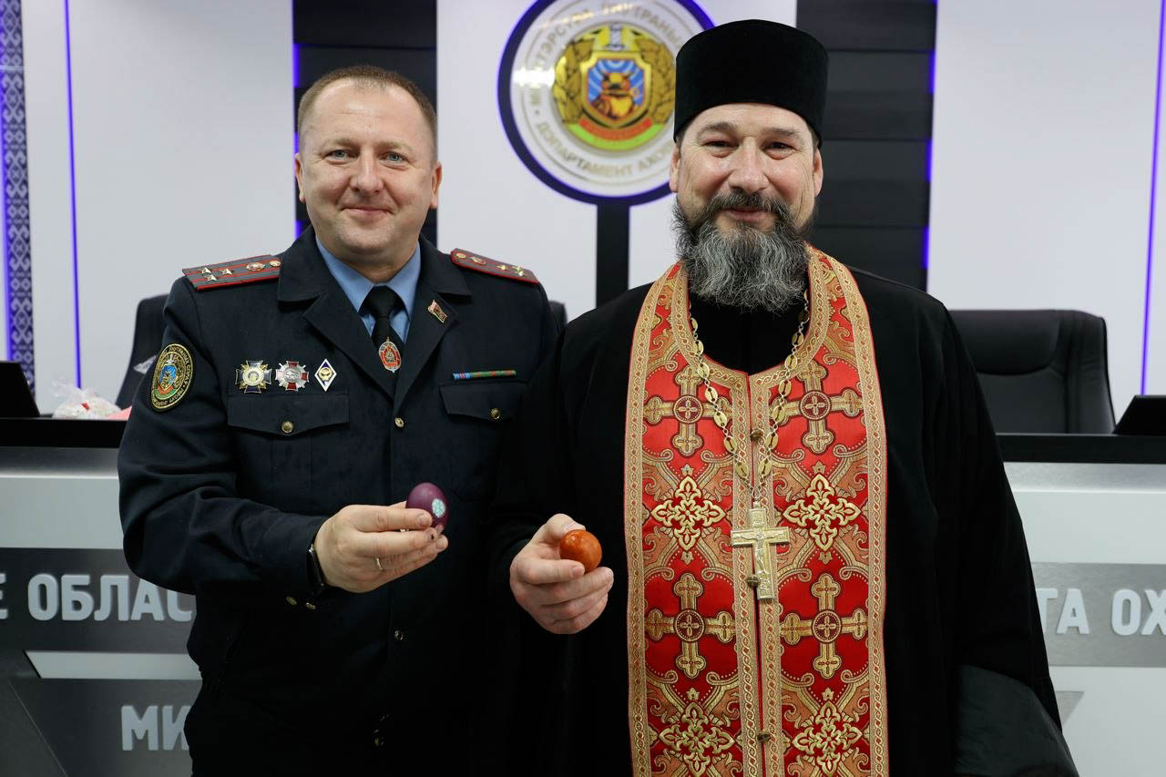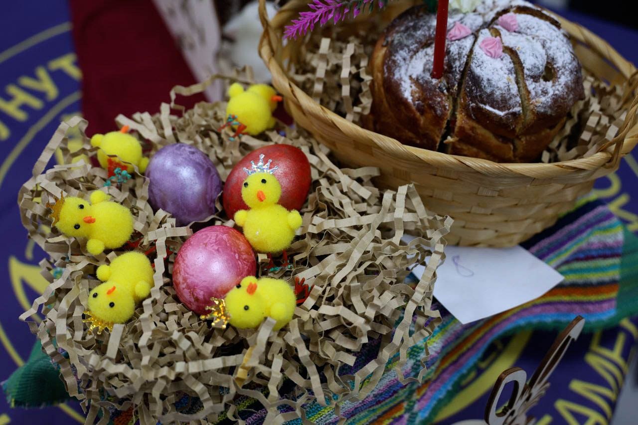 На праздничное мероприятие был приглашён клирик храма Преображения Господня иерей Василий Коломиец. Священнослужитель освятил пасхальные угощения, поздравил собравшихся со Светлым Христовым Воскресением и напомнил о смысле Пасхи как праздника победы жизни над смертью. В своём слове пастырь пожелал участникам хранить пасхальную радость, заботиться о ближних и нести в повседневной жизни дух мира, внимания и добра.