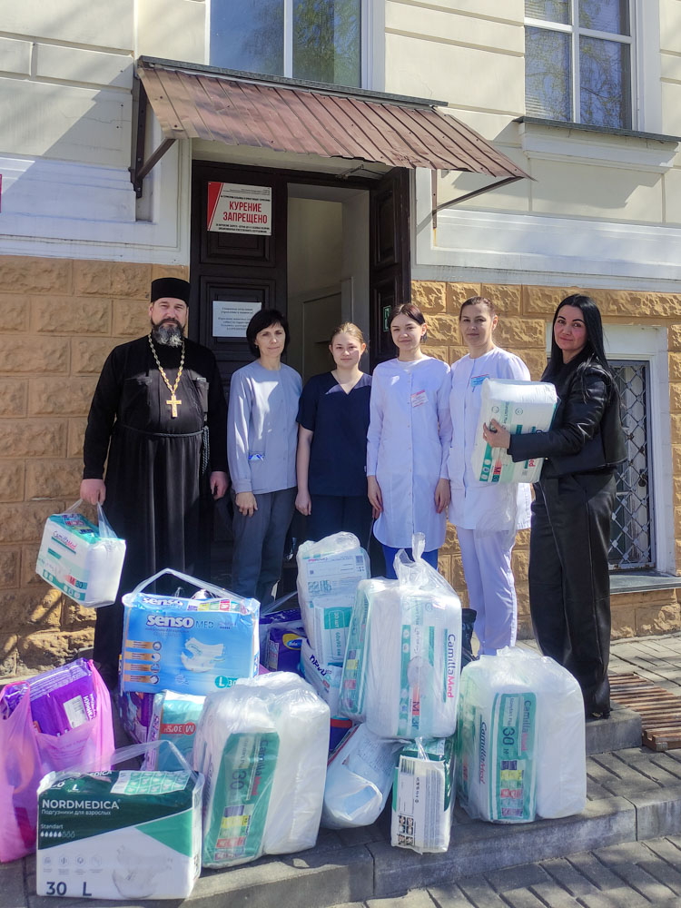 14 апреля, в дни Светлой седмицы, иерей Василий Коломиец вместе с прихожанами храма Преображения Господня посетил Гомельскую городскую клиническую больницу скорой медицинской помощи. В медицинское учреждение были переданы подгузники для взрослых и средства гигиены, собранные усилиями прихожан.