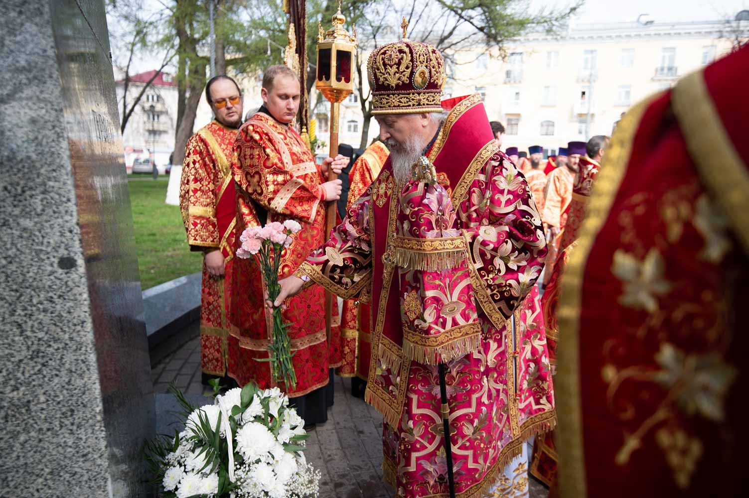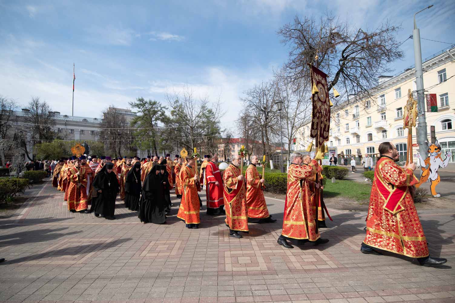 После богослужения духовенство и верующие по традиции совершили Крестный ход к памятнику святителю Кириллу Туровскому, установленному в одноимённом сквере у Гомельского областного драматического театра. У памятника было пропето величание святому и возложены цветы.