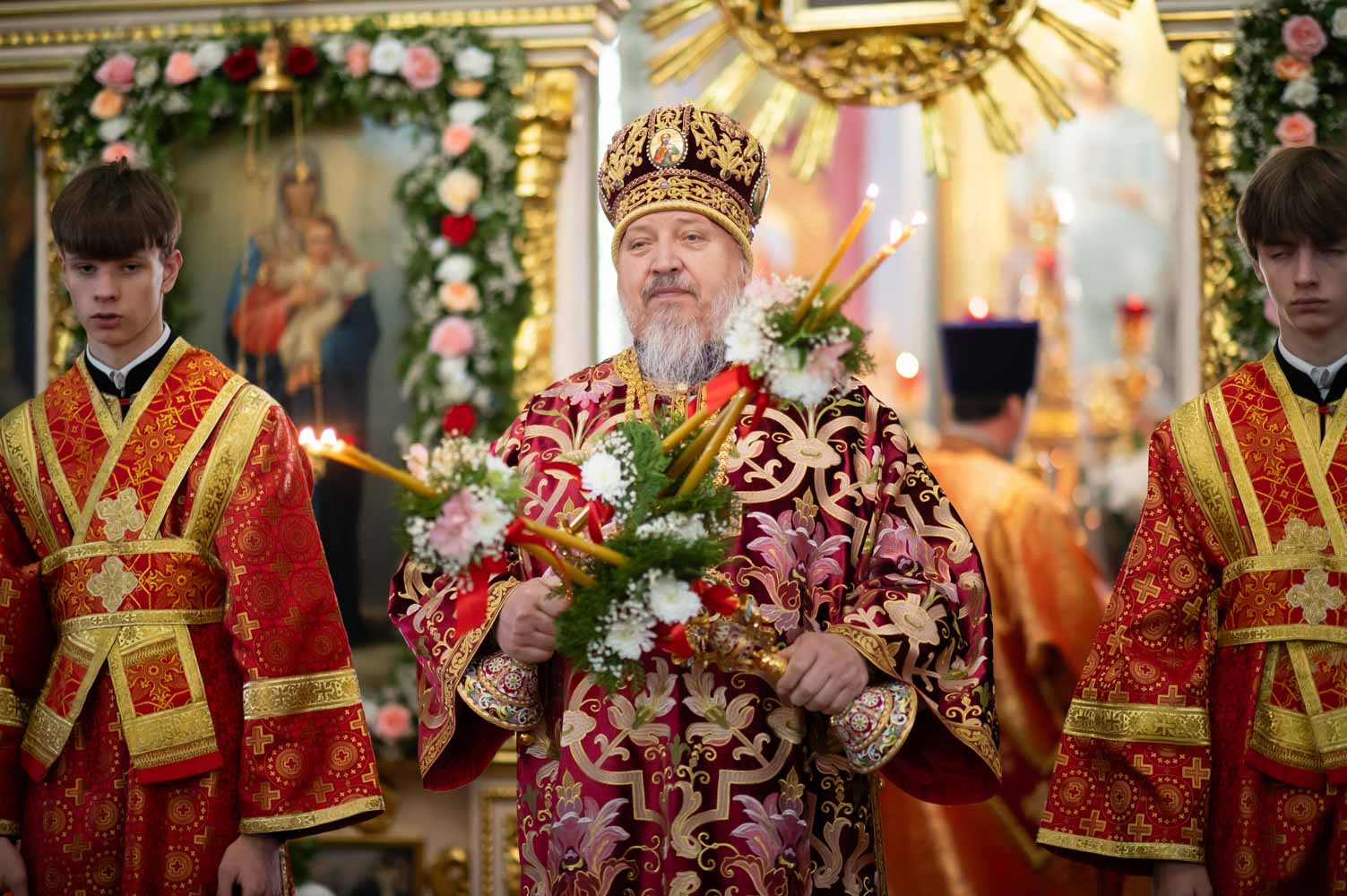 Его Высокопреосвященству сослужили благочинные округов, председатели епархиальных отделов, настоятели приходов и духовенство епархии.