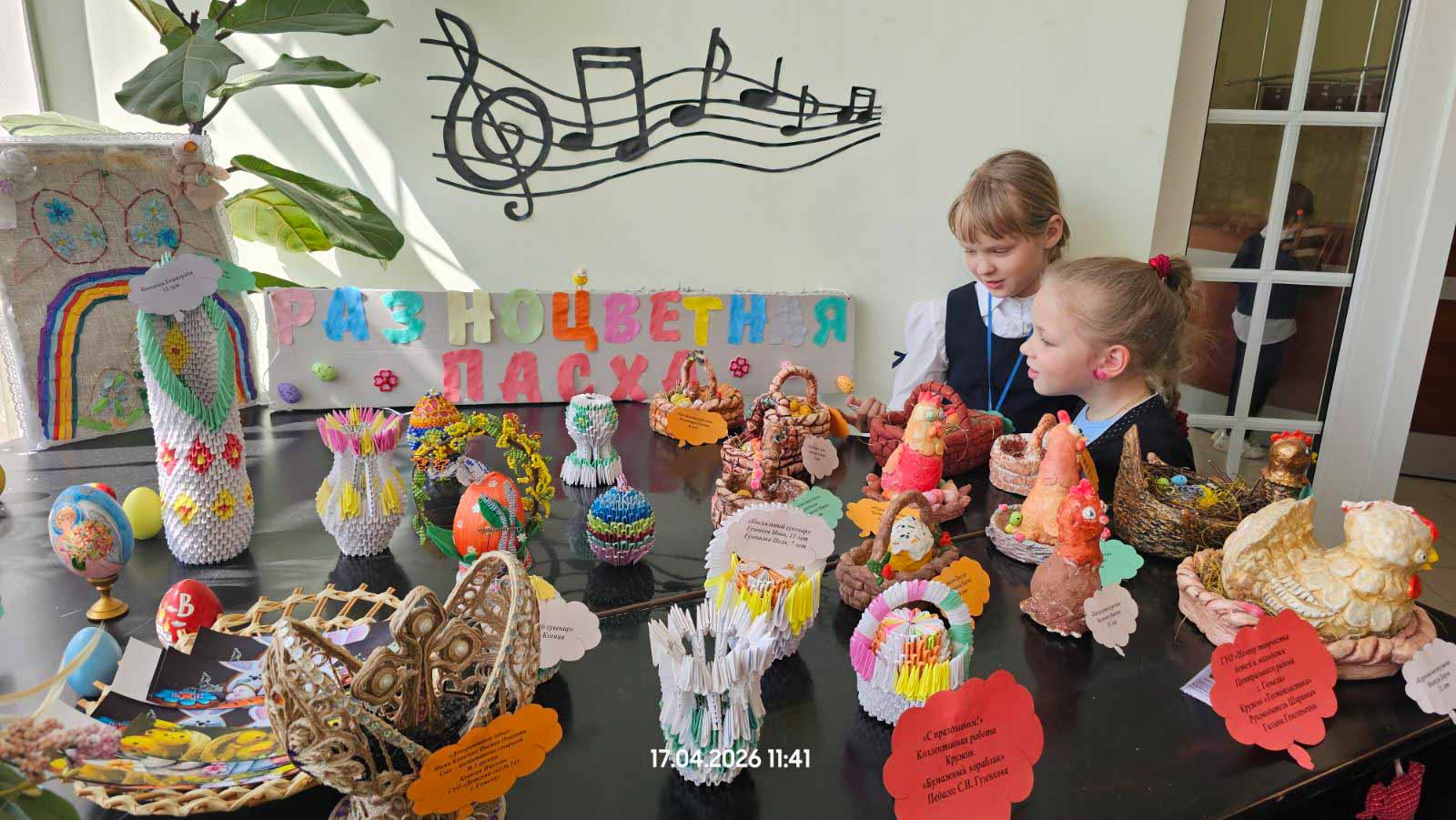 К встрече сотрудники библиотеки подготовили выставку творческих работ «Разноцветная Пасха». Поделки, созданные учащимися района и читателями библиотеки, стали живым продолжением пасхальной темы и наполнили встречу особым настроением.