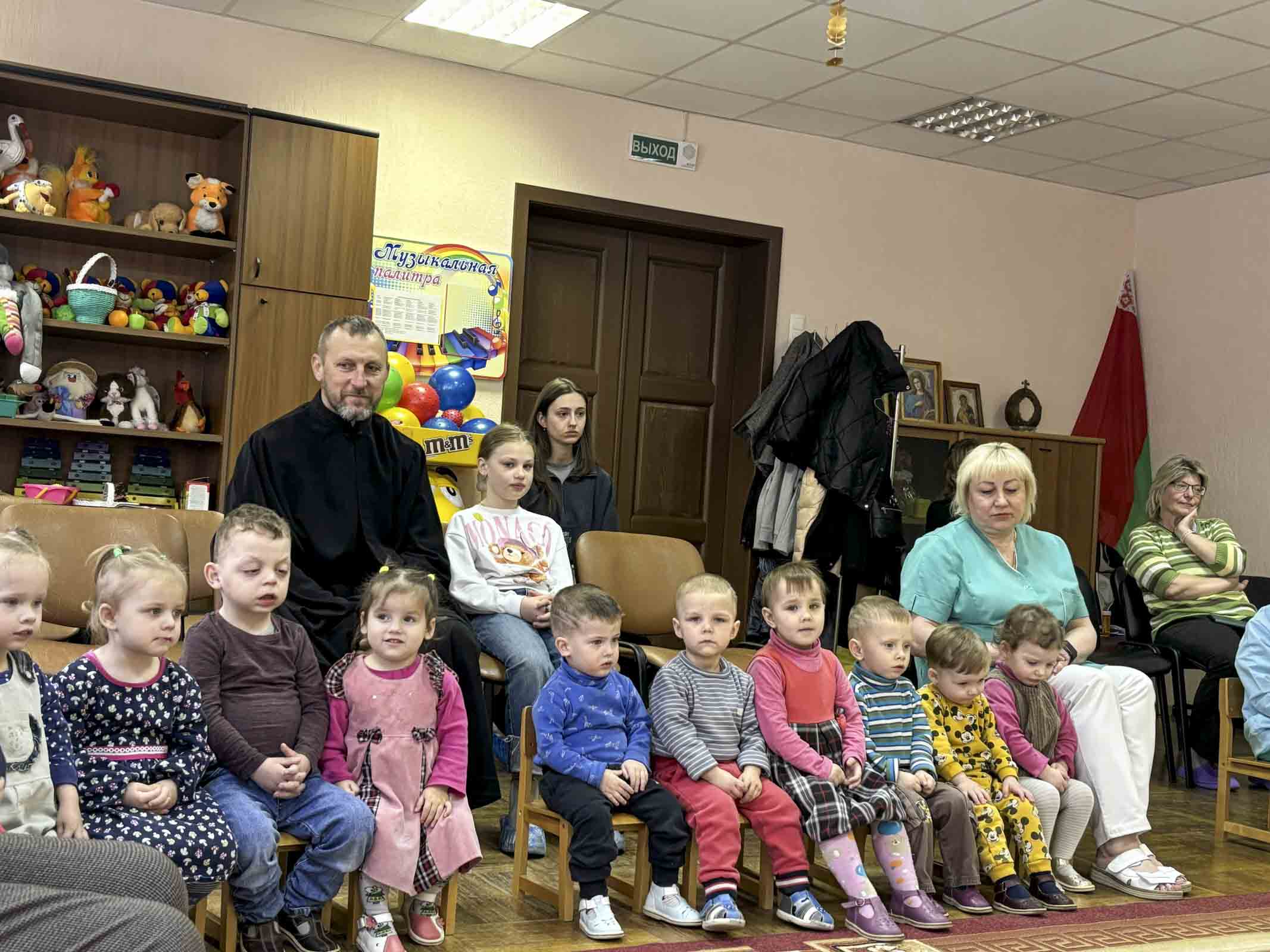 В эти светлые Пасхальные дни воспитанники воскресной школы нашего храма, их родители и преподаватели совместно с диаконом Игорем Гришаном посетили Гомельский областной дом ребёнка. Для детей была подготовлена театрализованная постановка с батлеечными куклами о необычном зайце, который стремился обрести друзей. Завершилась постановка совместным хороводом с мыльными пузырями, создавая атмосферу радости и праздника.